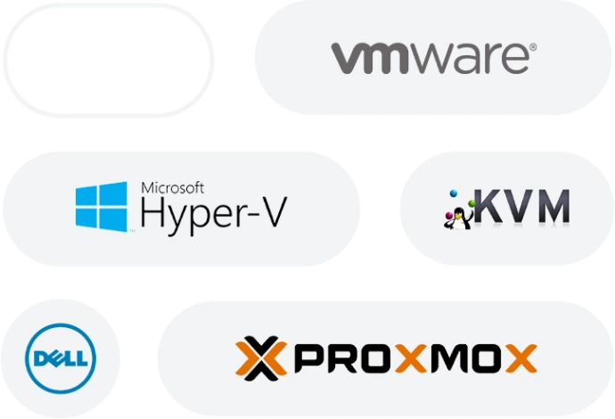- Virtualize with VMware, Hypwer-V, KVM, or Proxmox.
