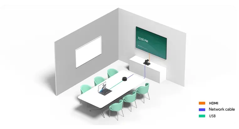 When used with MeetingEye 500 and other devices, it can directly connect to a PC via Type-C for instant content sharing. When used UVC85 and other devices, it can directly connect to a PC via Type-C for utilizing conference room audio-visual peripherals during computer-based meetings.